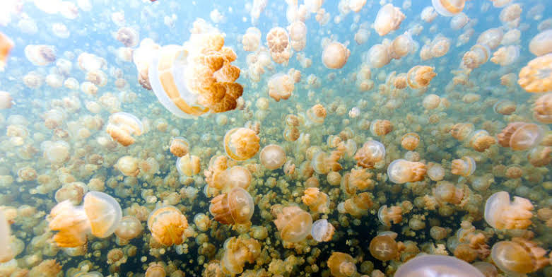 The absence of natural predators in the lakes allowed the population to rise to incredible proportions. There is no dense population in the world. It is noteworthy that there are many similar ponds on Eil Malk Island, the main properties being jellyfish. The largest among them is Sea Monster Lake, where swimming is allowed. The lake is home to only two species of jellyfish, Golden, Mastigias papua and Moonlight, Aurelia aurita. There is also a small fish and crustacean population. It is recommended to visit Jellyfish Lake in the first half of the day, as its main residents are active, especially at night and until 2:00.